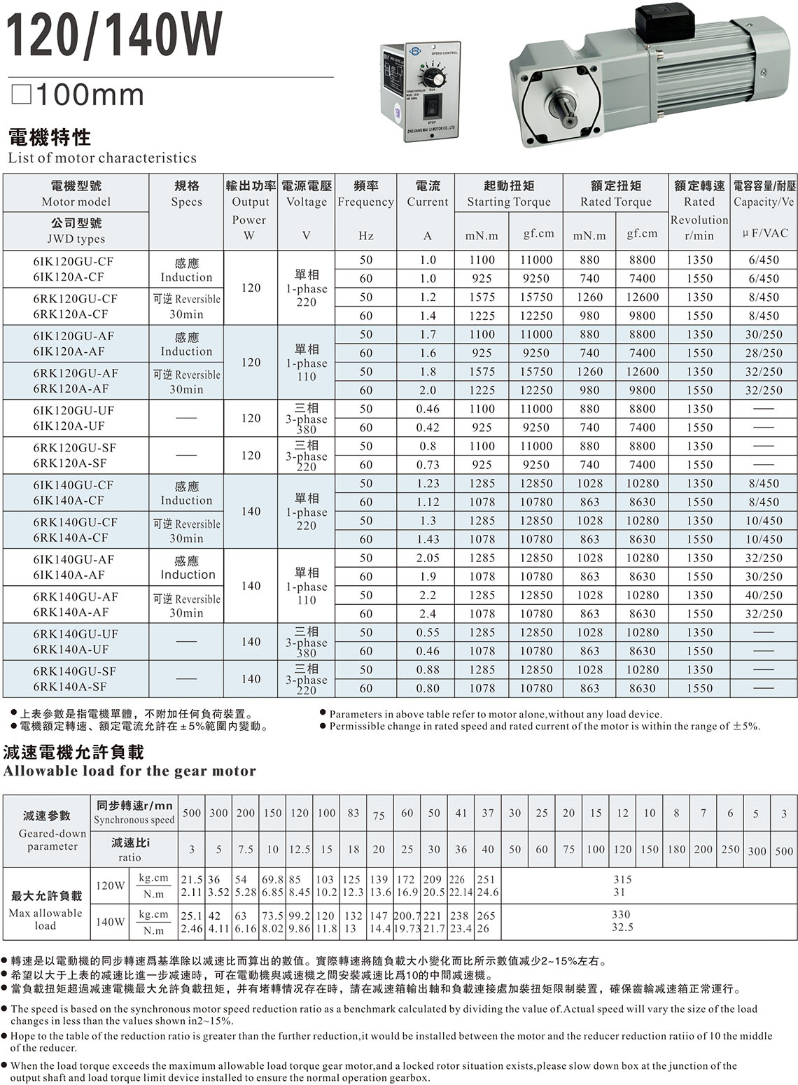 120/140W(RC/RT型號)
